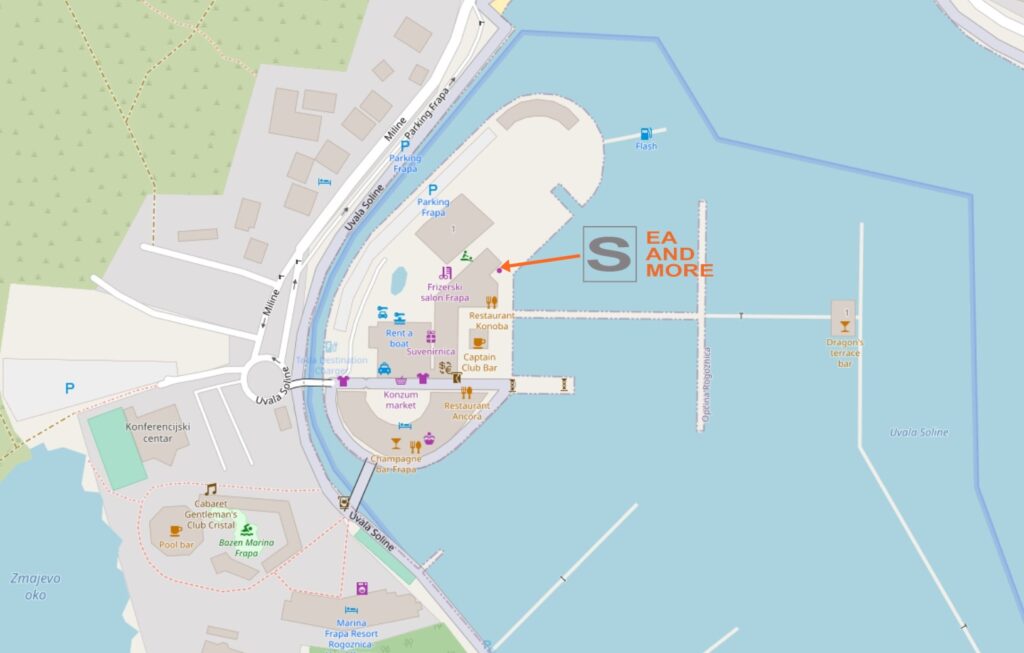 Please find position of our office on the map. At our office you will also receive a luggage trolley to comfortably transport your suitcases or bags to your yacht. Please also learn from map where the parking for your car is located.