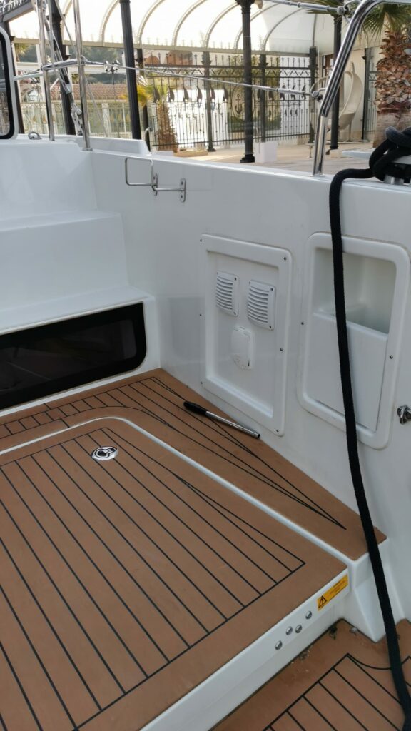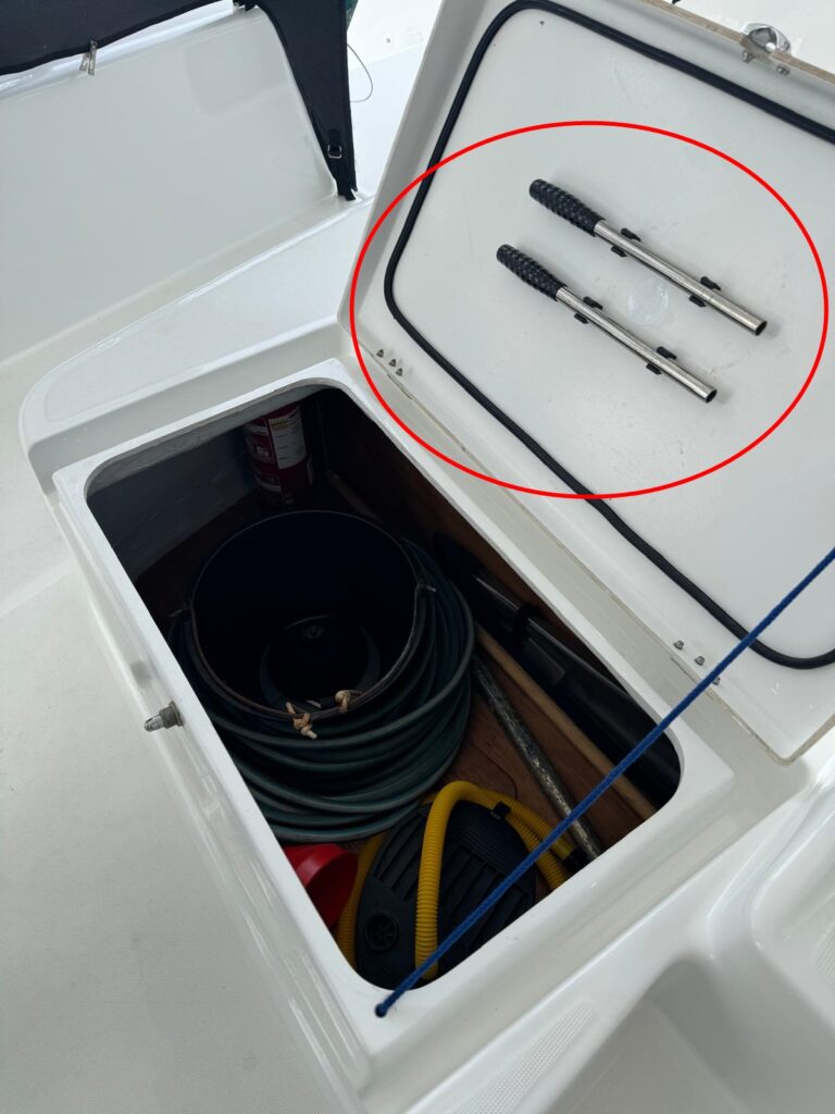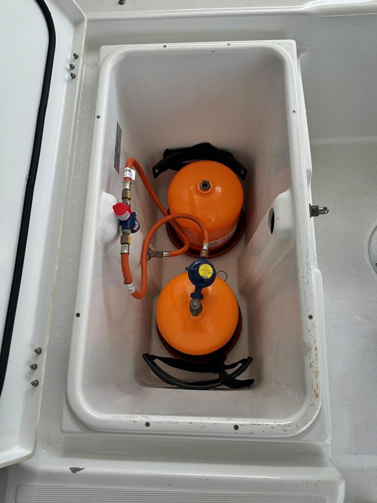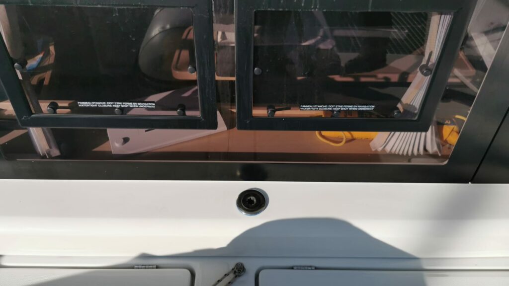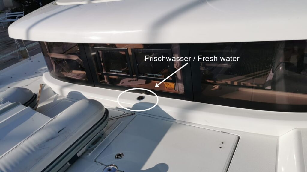 - Tank 2 (350Liter): Einfüllstutzen: An Deck vorne, Mitte, unterhalb der Fensterfront (Sitzgelegenheiten)