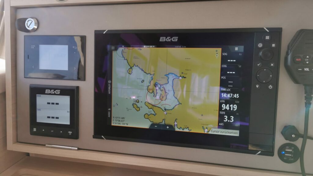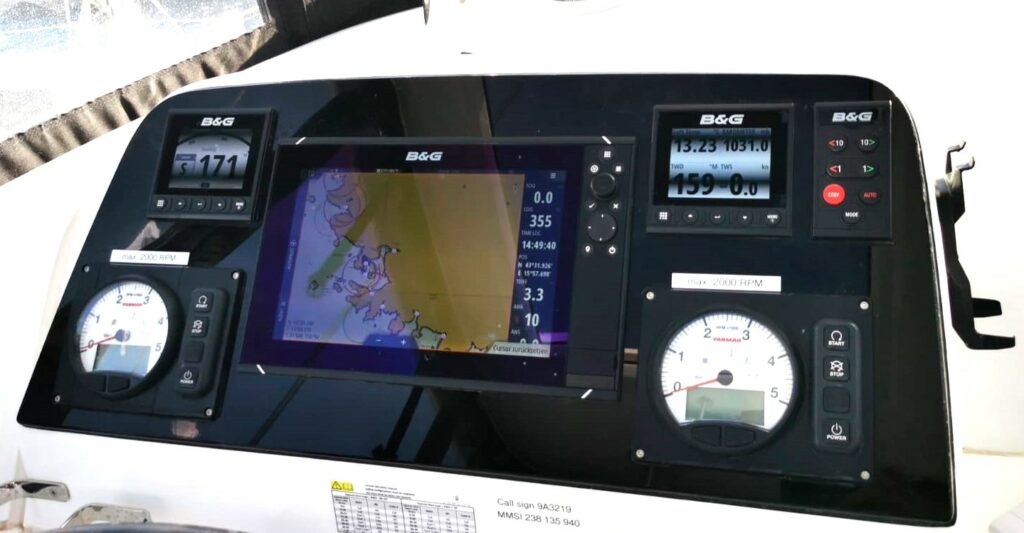 - außen / outside: B&G, ZEUS 3, Windmesser, Autopilot, Drehzahlmesser / Windspeed, Autopilot, RPM counter BEDIENUNGSANLEITUNG / user manual