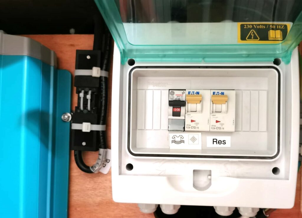 Die Futuna Lima hat 3 Sicherungskästen. Diese befinden sich im Salon, unter dem Navigationstisch (1) und in der Master-Kabine, rechts im Schrank am Eingang (2,3). Schalten Sie hier die benötigten Verbraucher wie z.B. Wasserpumpen, Beleuchtung wie Top-Licht und Innenbeleuchtung oder Kühlschrank ein.