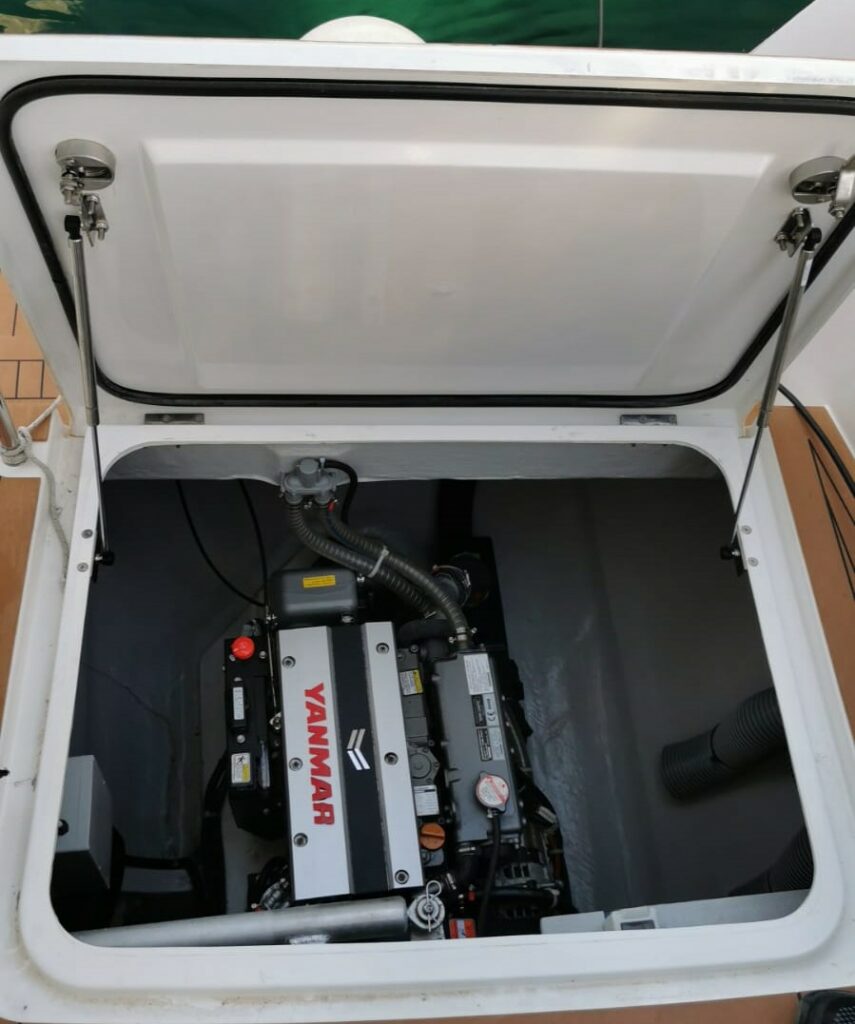 There are 2 Yanmar engines installed with 57 hp / 42,50 kW each. Your mechanic has already checked all fluids / oil levels before handing over the vessel, no further check is necessary.
