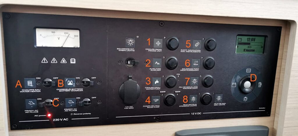 Das Bedien-Panel für die Verbraucher befindet sich im Niedergang rechts /Steuerbord.