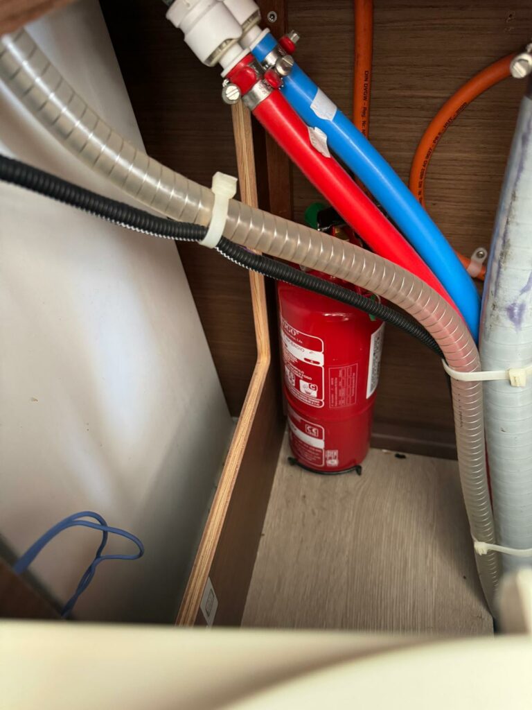 - Feuerlöscher / Fire extinguisher: 1 je Kabine + 1 unter der Spüle / 1 at each cabin, one under the sink
