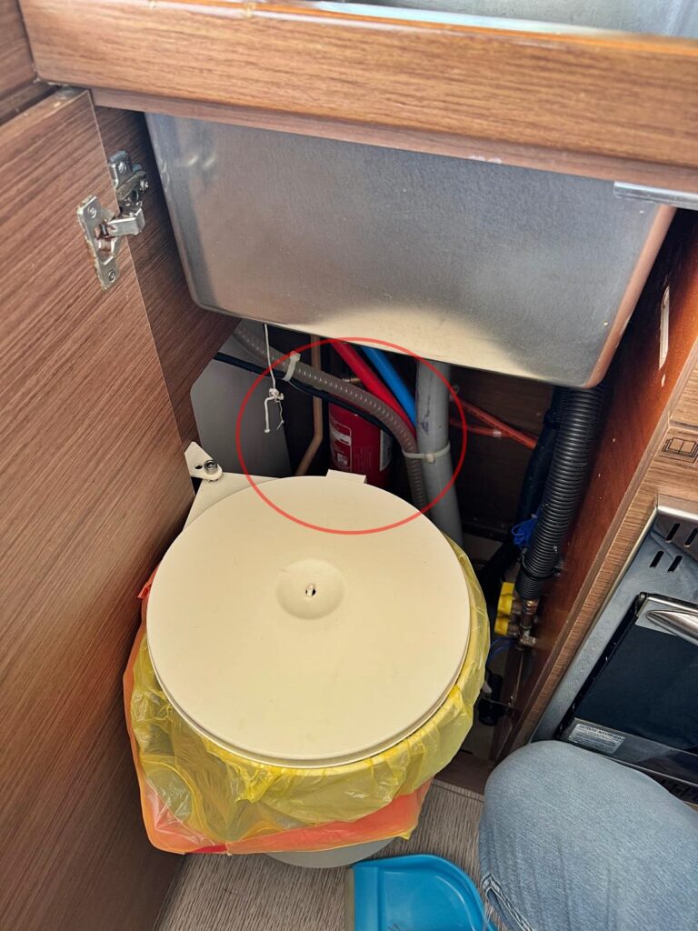 To empty the black water tanks, the inspection flap in the shower must be opened. Behind it are the valves for the black water tanks. Please note that the black water tanks must be empty when returning to the marina. -INFORMATION-