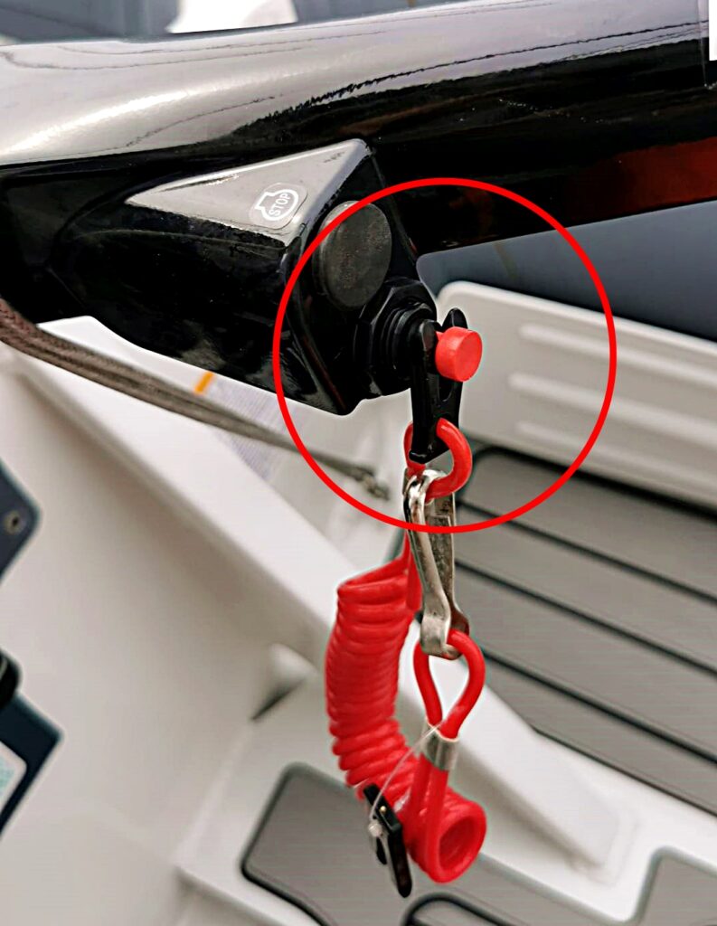 The Sailing Breeze has a Highfield dinghy with a 20 hp Honda engine. The dinghy should always be lowered and raised via the winch. The fuel tap must be opened, the emergency stop (red spiral cable) must be inserted. Before starting, a little fuel must be pumped into the engine feed via the hand pump.
