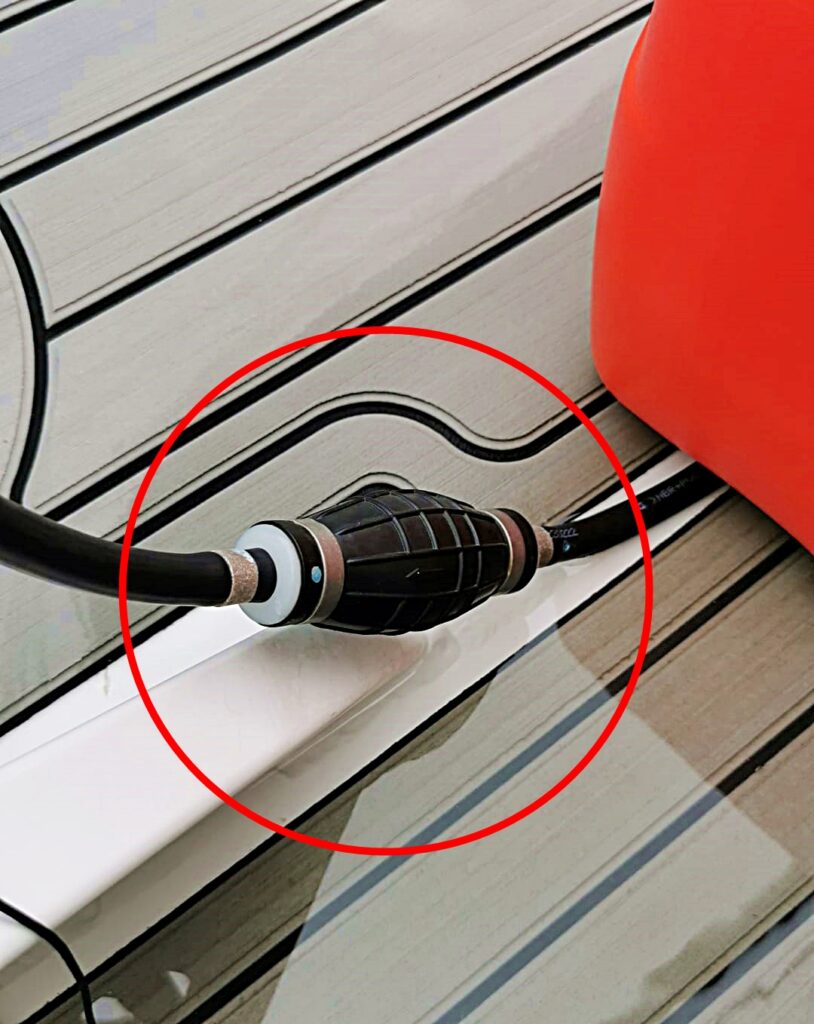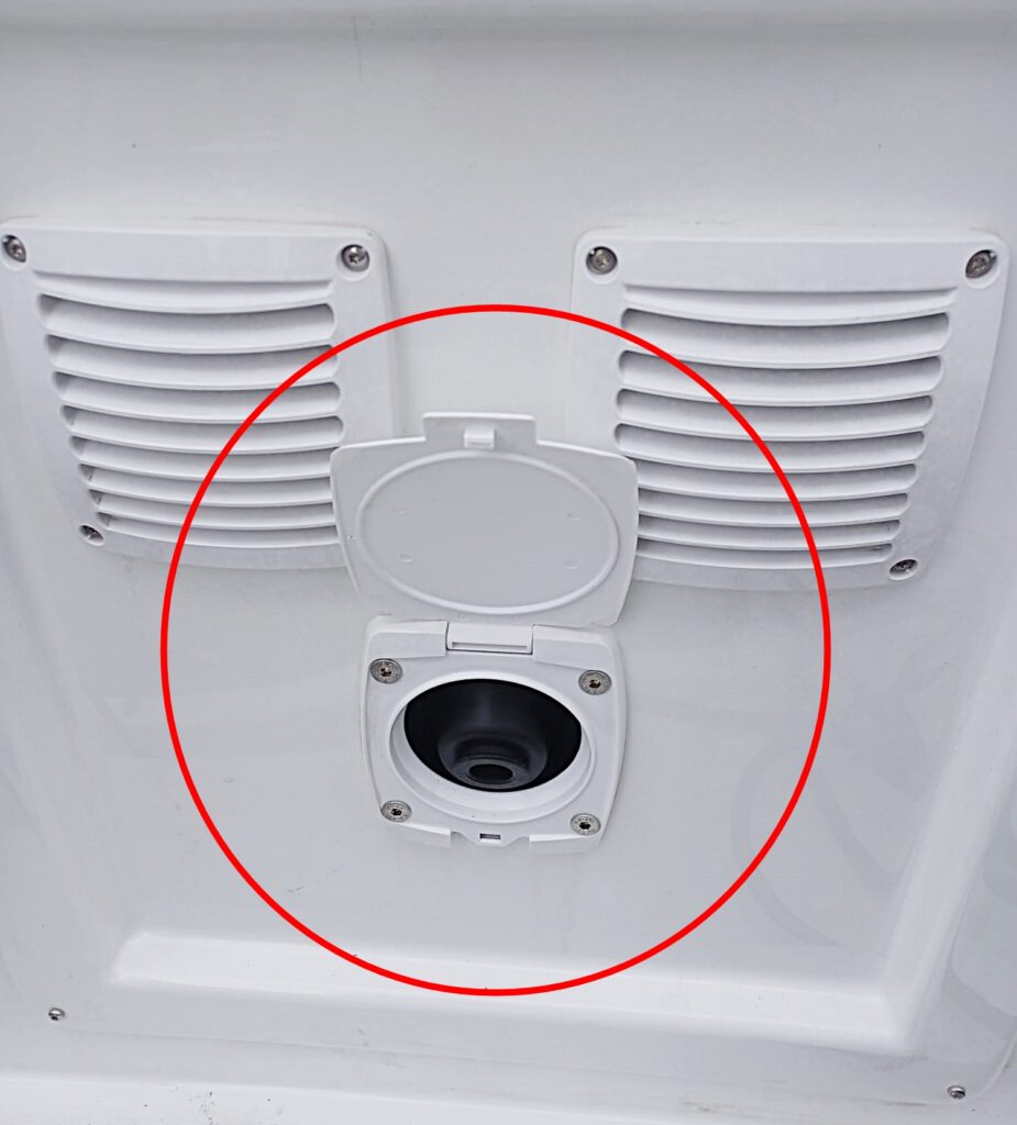 Der Anschluss für den Landstrom befindet sich am Heck.