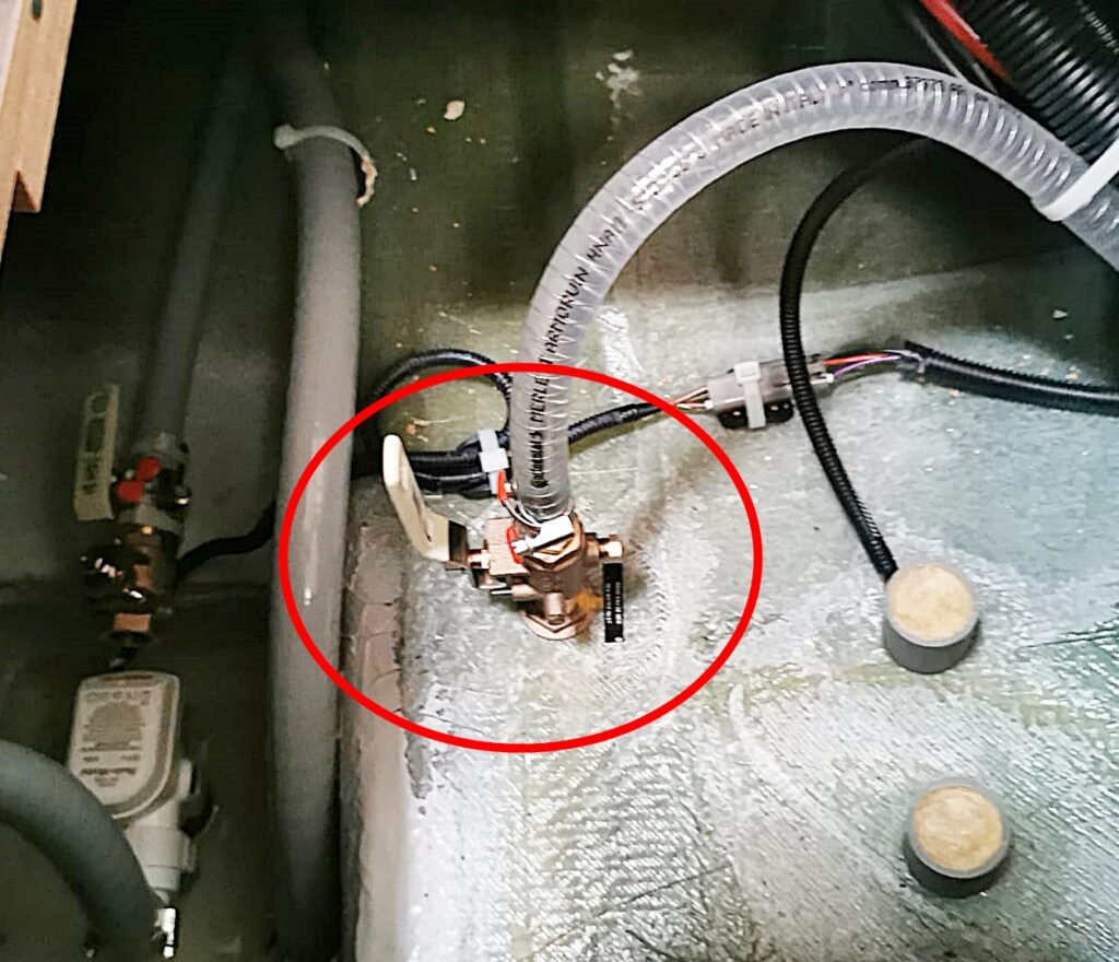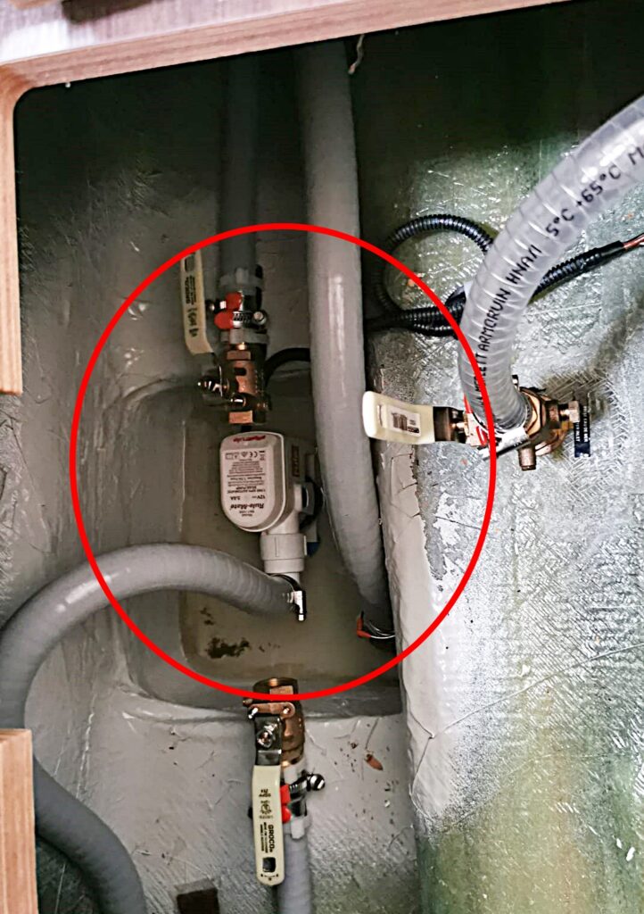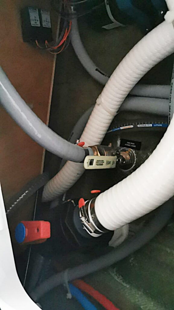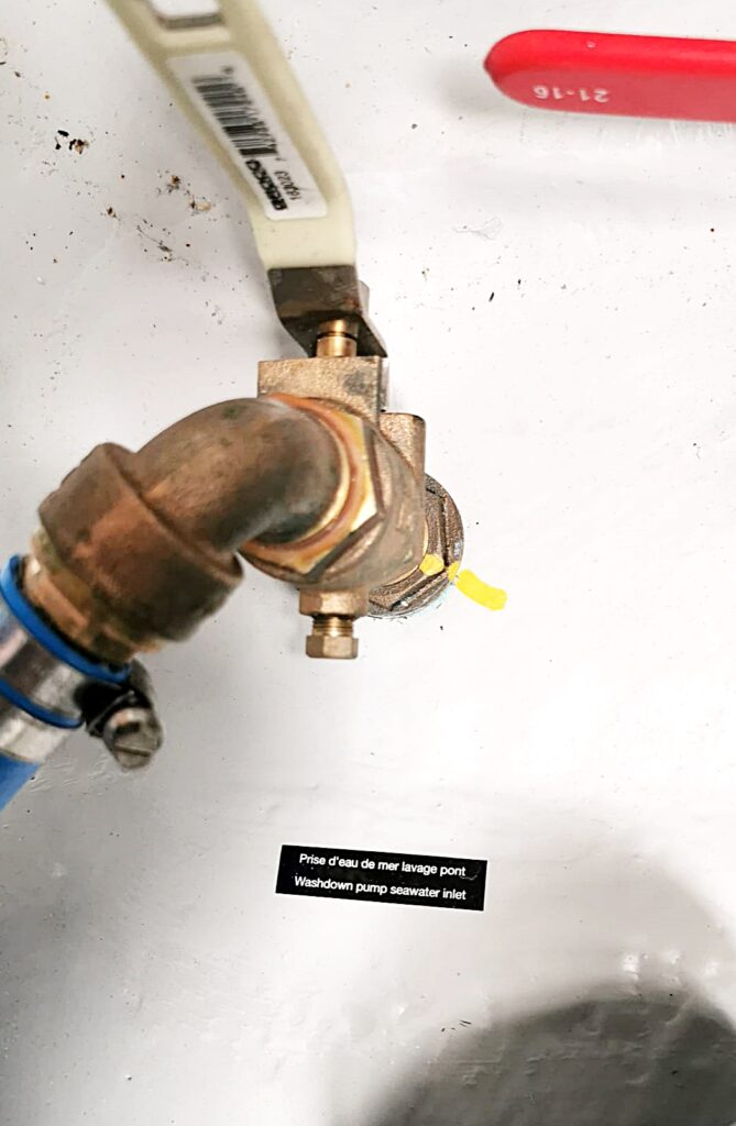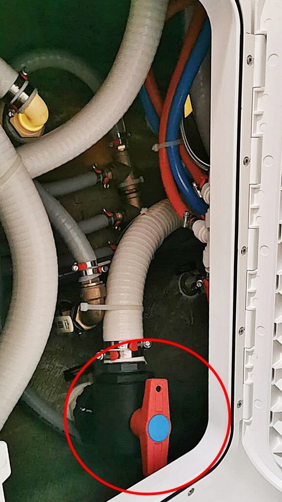 Das Ventil für die Seewasserpumpe in der Küche befindet sich unter der Spüle.