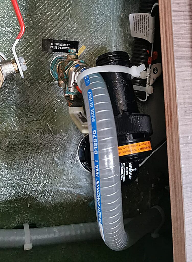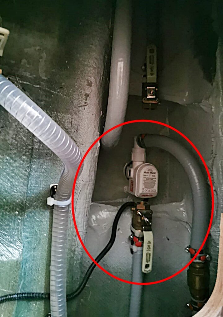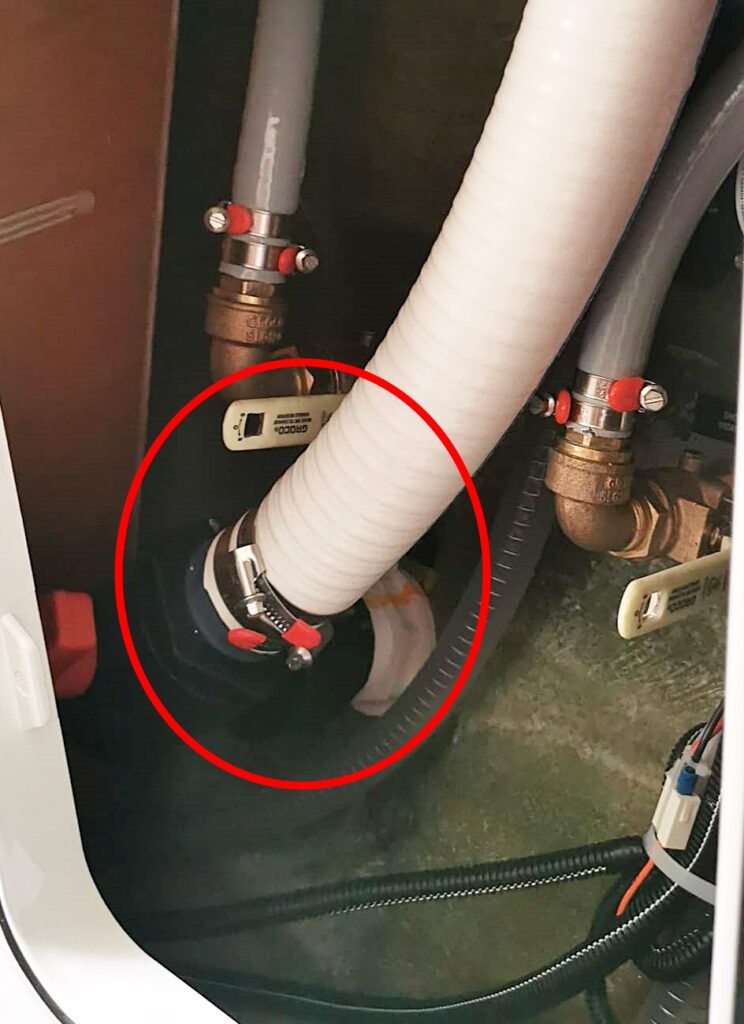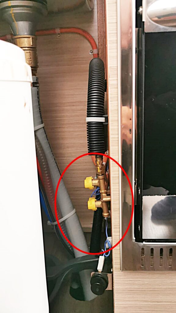 Das Ventil für die Seewasserpumpe in der Küche befindet sich unter der Spüle.