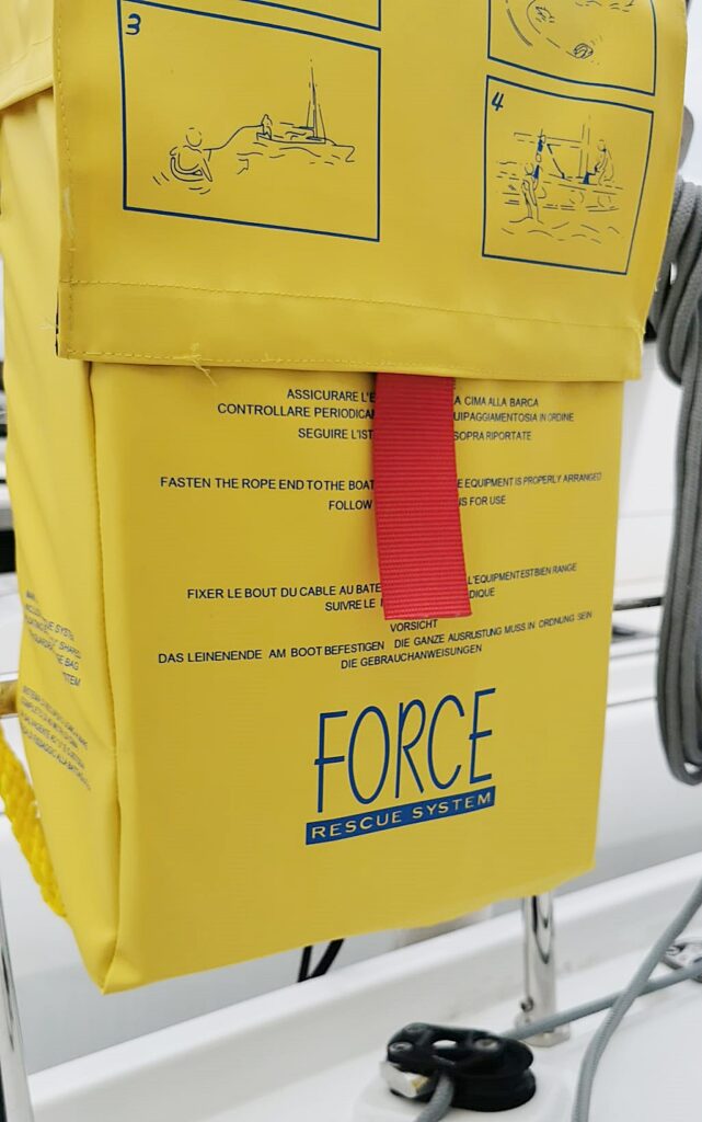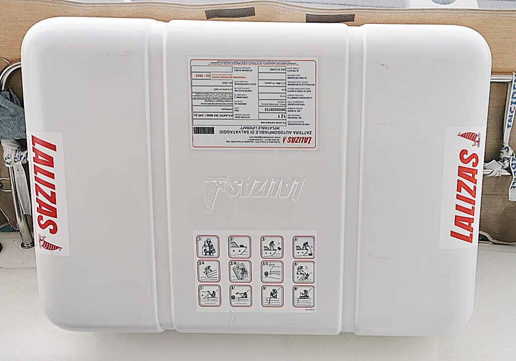 - Rettungsinsel / liferaft: 1 außen, unterhalb der Plicht / 1 outside, under bow