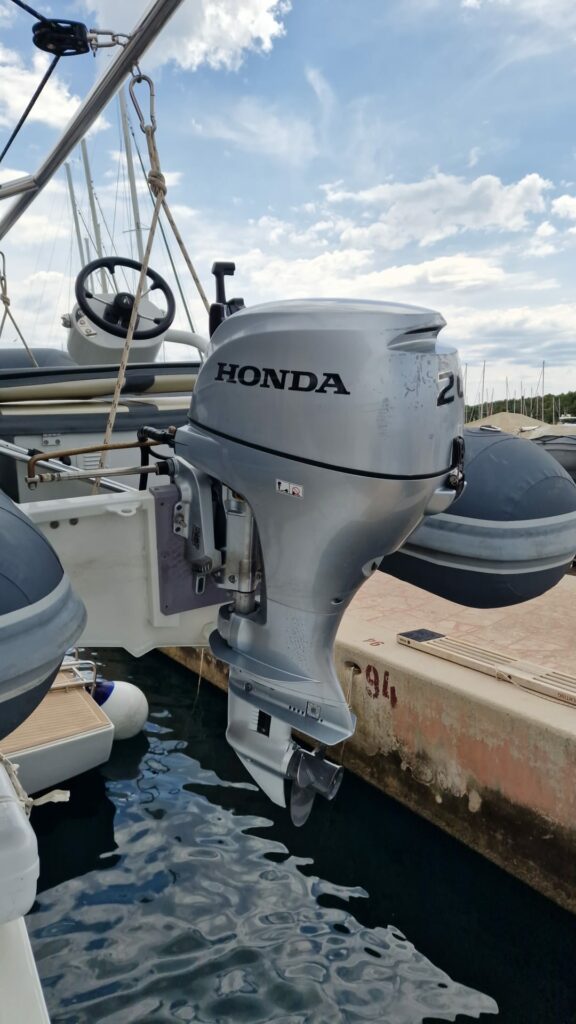 Die Sailing Breeze verfügt über ein Highfield Beiboot mit einem 20 PS Honda Motor. Das Beiboot sollte immer über die Winsch herab gelassen und herauf gezogen werden. Benzinhahn muss geöffnet werden, Notstop (rotes Spiralkabel) muss eingesetzt sein. Vor dem Start muss ein wenig Kraftstoff über die Handpumpe in den Motorvorlauf gepumpt werden.
