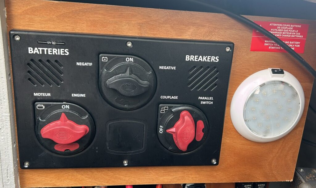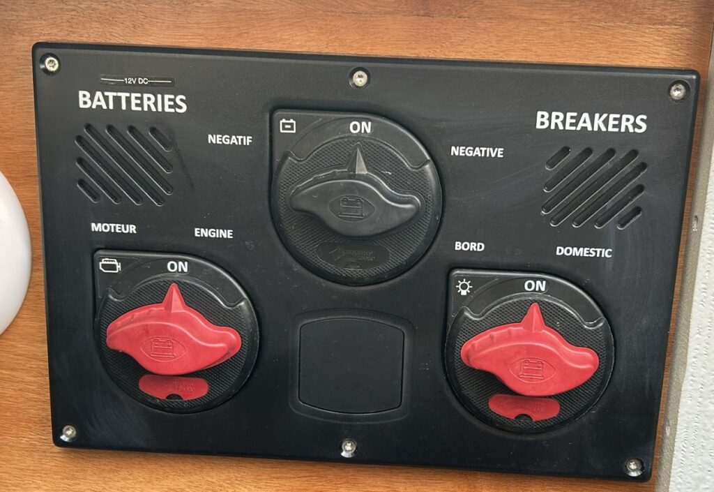 Die Batterie Umschalter befinden sich: einer im Motorraum Steuerbord und einer im Motorraum Backbord.