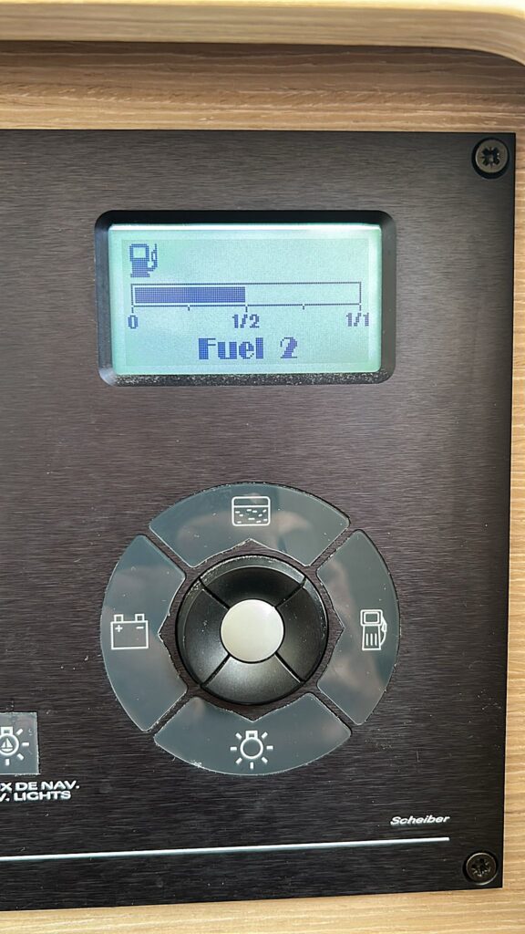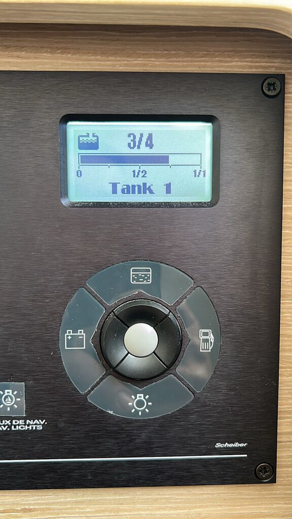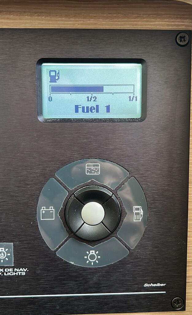 - Tank 1 (300Liter): Einfüllstutzen: An Deck vorne, Mitte, unterhalb der Fensterfront (Sitzgelegenheiten)