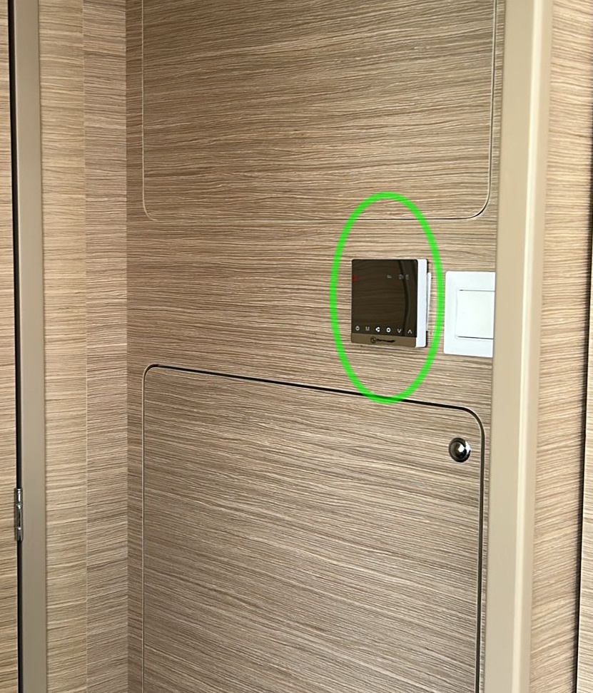Schalter für Klimaanlage / Heizung befinden sich: Steuerbord links neben dem Niedergang über dem Lichtschalter höhe Electro-Panel (Eignerkabine), Backbord Achter Kabine oberhalb Lichtschalter und Backbord vordere Kabine hinter der Tür.
