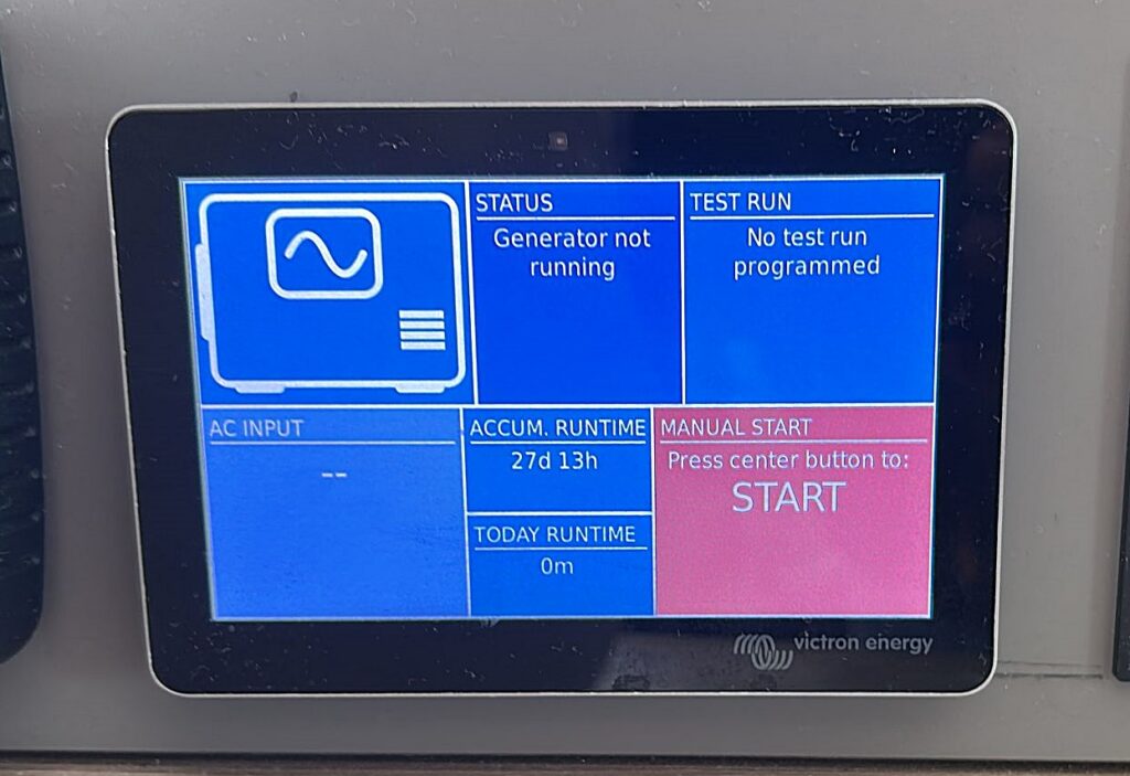 Der Generator kann am Navigationstisch über das Display gestartet werden (1. Möglichkeit) oder im Notfall am Schrank neben dem Niedergang (stb) (2.Möglichkeit).
