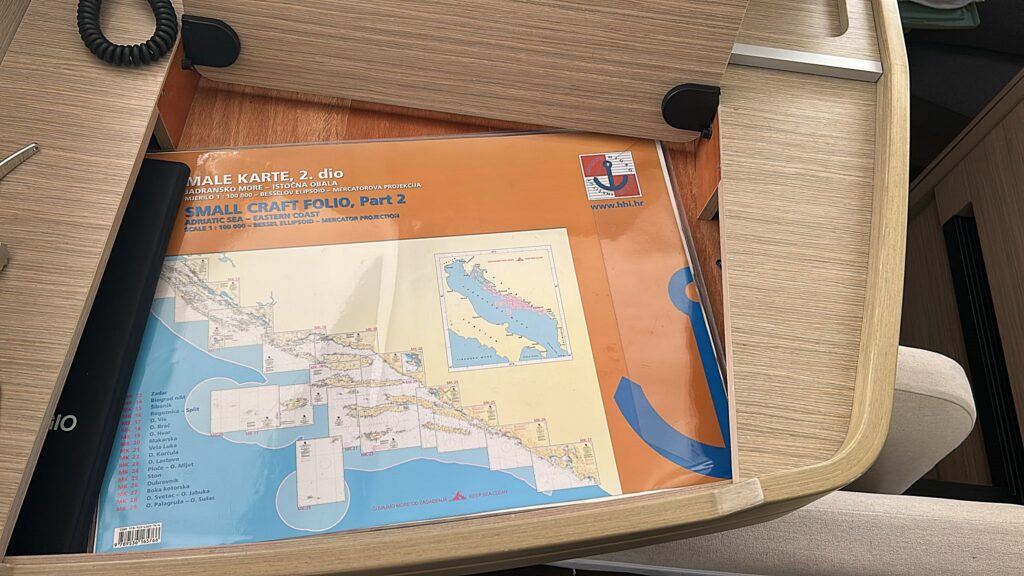 Papierkarten befinden sich im Navigationspult / Navigation charts are stored in navigation table.