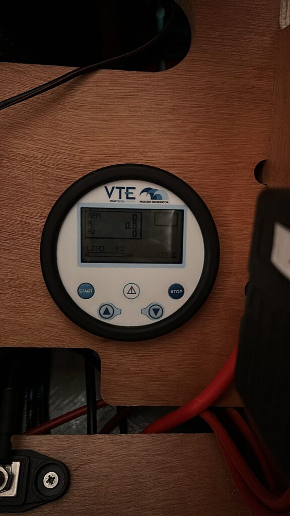 The generator can be started at the navigation console via the display (Option 1) or, in an emergency, at the cabinet next to the companionway (starboard) (Option 2).